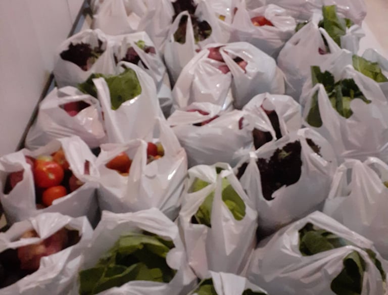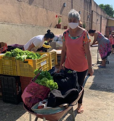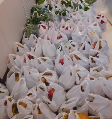 Distribuímos semanalmente o kit Frutas e verduras para 62 famílias carentes. Com apoio do banco de Alimentos do CEASA.